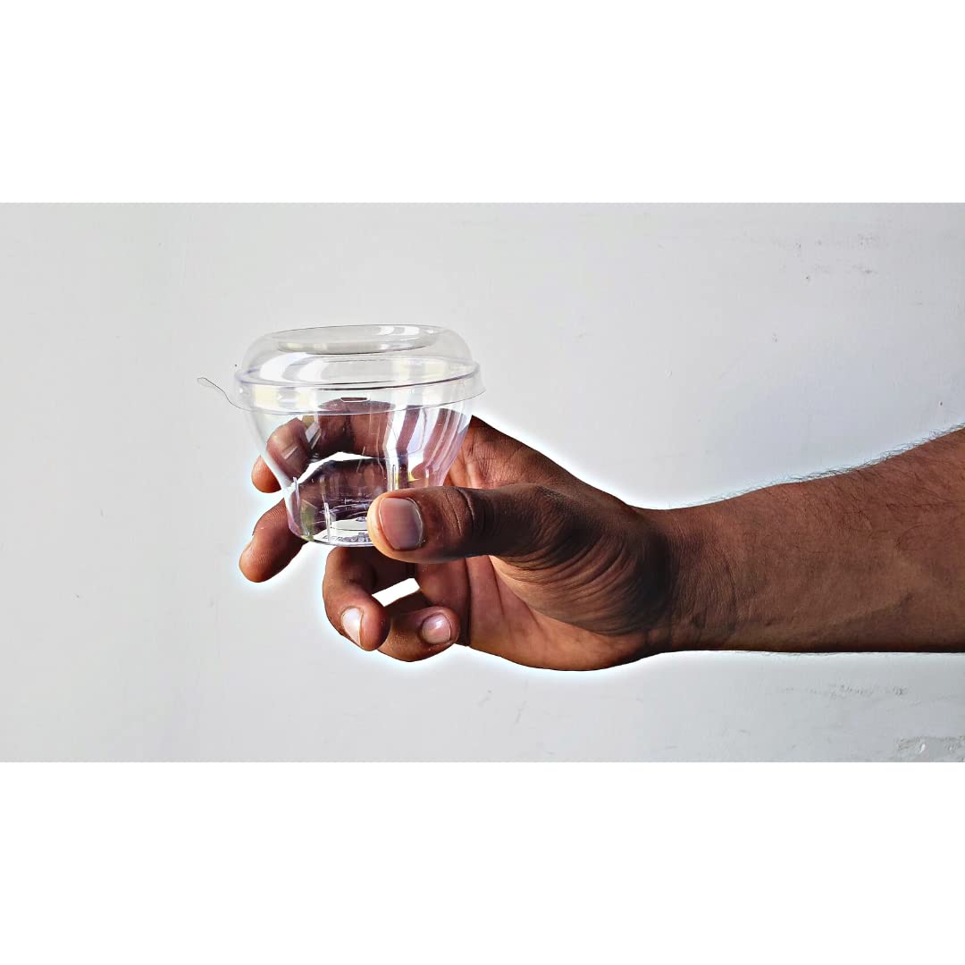 Alpha Basics Acrylic 160ml PL Dessert Pudding Cups (Pack of 10) with Lid Mousse Party Small Bowls, Transparent